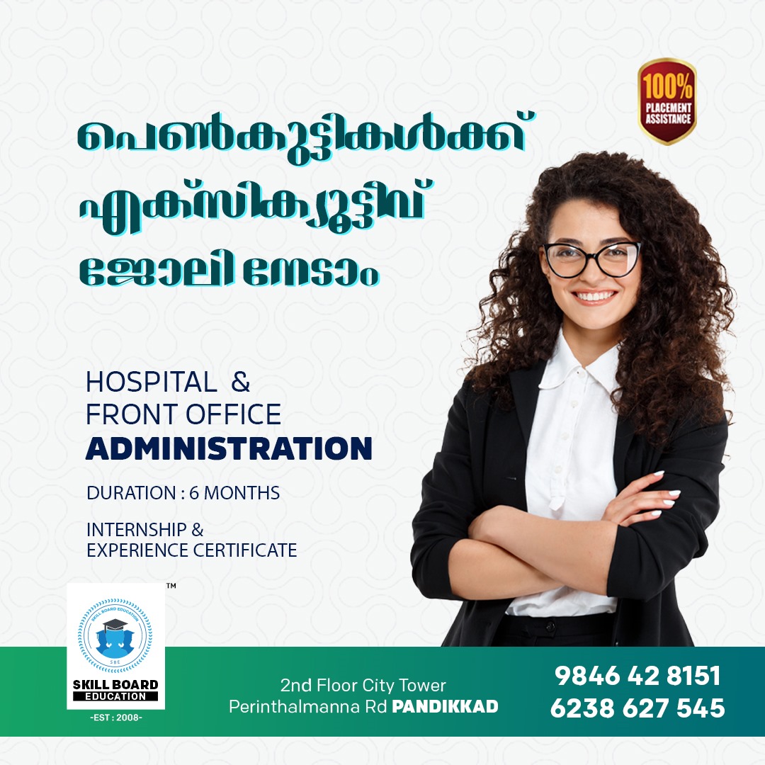 COMPUTER FUNDAMENTALS, MICROSOFT WORD,MICROSOFT EXCEL, MICROSOFT POWERPOINT,BOOK KEEPING,TALLY PRIME, MEDIWARE, COMMUNICATIVE ENGLISH,HOSPITALITY,HOSPITAL RULES ,SOCIAL MEDIA MARKETTING,GENARAT AI